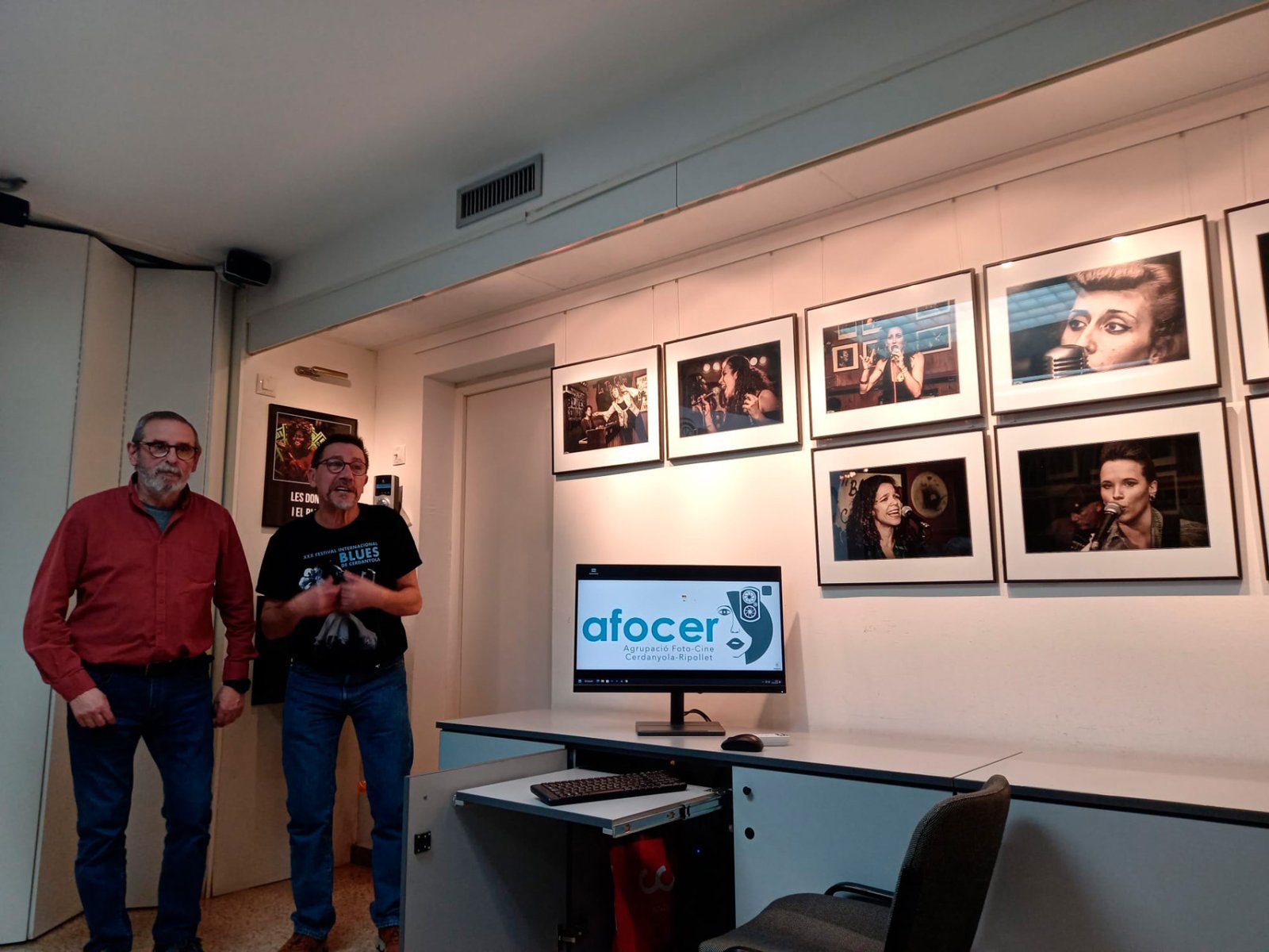 A continuació es va fer la inauguració de l’exposició Dones i Blues del nostre company Joan Manuel Vera (Tito), que també ens va passar un audiovisual amb moltes més fotografies de la presència de les dones al blues, fotografies recopilades durant els molts anys quer el Tito ha seguit amb afició aquests concerts en locals de la nostra ciutat.
