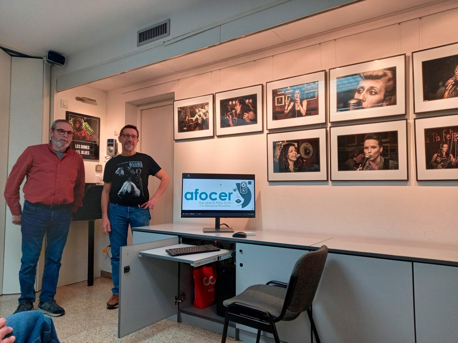 A continuació es va fer la inauguració de l’exposició Dones i Blues del nostre company Joan Manuel Vera (Tito), que també ens va passar un audiovisual amb moltes més fotografies de la presència de les dones al blues, fotografies recopilades durant els molts anys quer el Tito ha seguit amb afició aquests concerts en locals de la nostra ciutat.