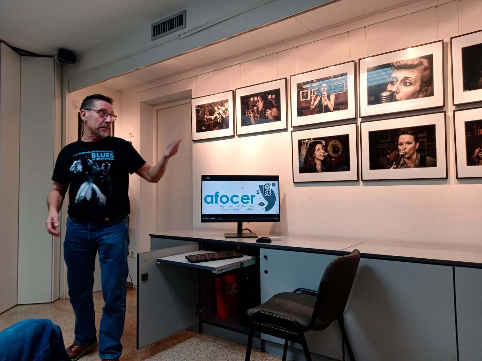 A continuació es va fer la inauguració de l’exposició Dones i Blues del nostre company Joan Manuel Vera (Tito), que també ens va passar un audiovisual amb moltes més fotografies de la presència de les dones al blues, fotografies recopilades durant els molts anys quer el Tito ha seguit amb afició aquests concerts en locals de la nostra ciutat.