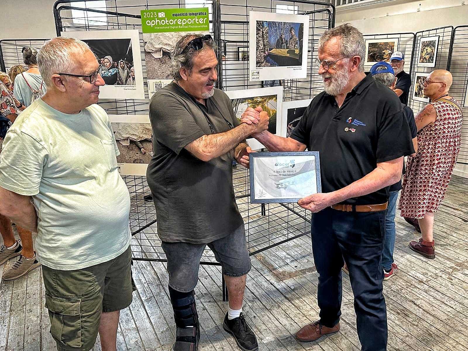 Durant el transcurs de l’acte, hem tingut l’honor de fer el lliurament del títol de Soci de Mèrit d’Afocer al company i amic Jean Saleilles, president de la FPF. Aquesta distinció honorífica es concedeix per tota la seva ajuda, de forma altruista i desinteressada, per promocionar la nostra entitat i les diferents exposicions que hem pogut exhibir durant més de vint anys al Festival Off Perpignan.