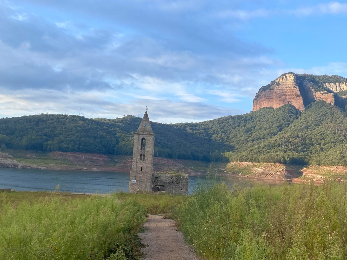 Vam poder caminar al costat de l’església del pantà, que estava en un nivell molt baix d’aigua.
