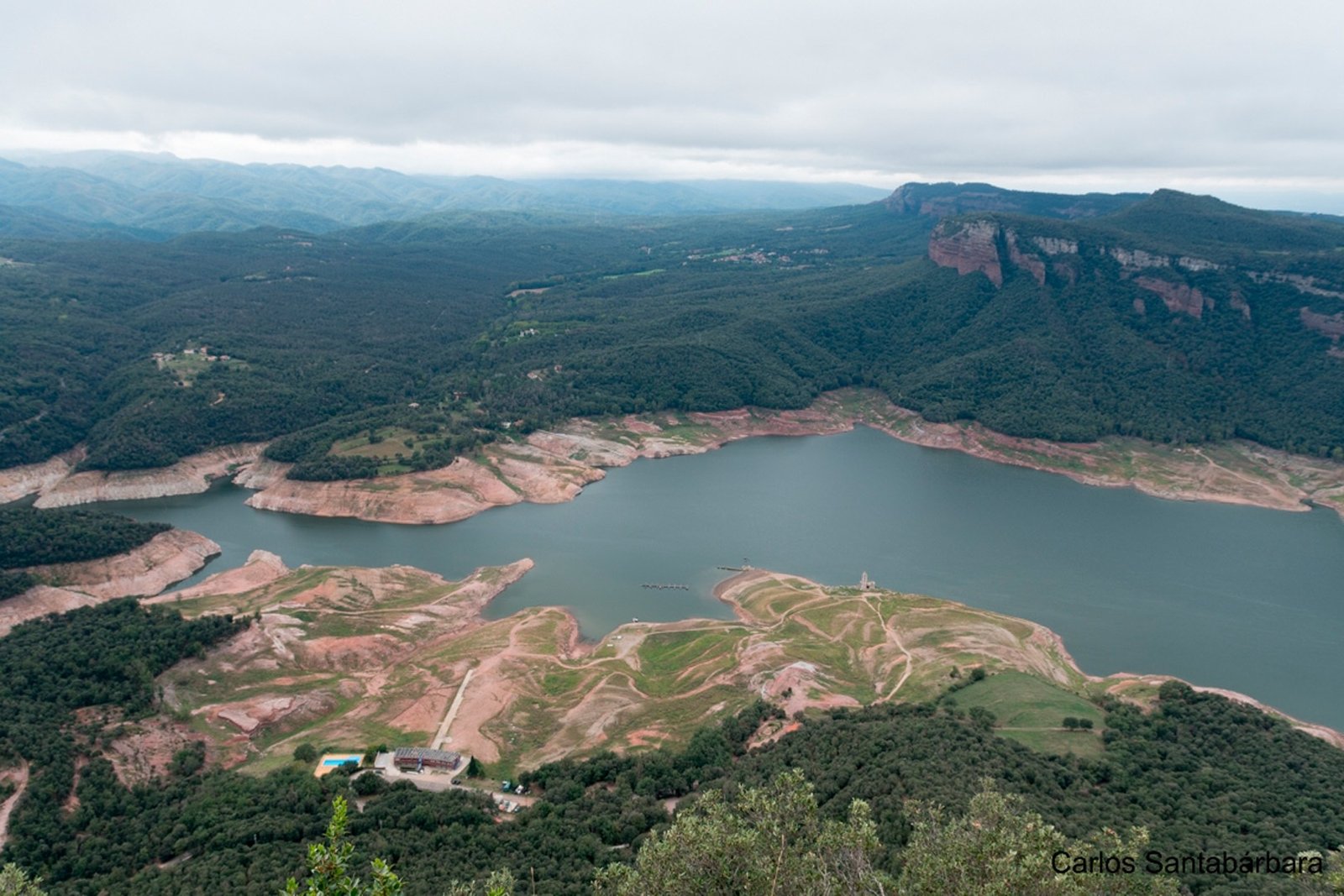 Després pugem a Tavertet, i realitzem una petita caminada fins al Puig de la Força. En el recorregut fotografiem el pantà de Sau des de l’alt. Ja va començar a ennuvolar-se amb núvols molt grisos.