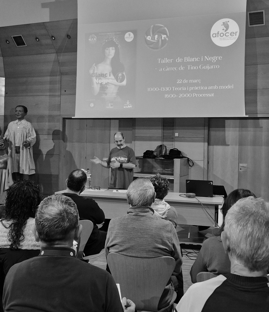 El dissabte a la tarda Tino va fer l’edició d’algunes de les fotografies fetes al matí i ens va explicar el seu flux de treball a l’edició de la fotografia de retrat en blanc i negre.