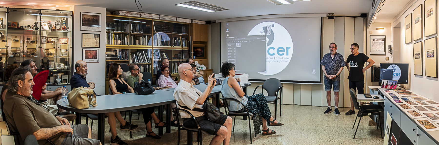 A continuación nuestro compañero Joan Manuel Vera (Tito) nos presentó su exposición Polaroid, una compilación de fotografías en formato panorámico obtenidas desde diapositivas, y posteriormente proyectadas a xàssis de Polaroid SX-70 o Polaroid 600, con temática principalmente marina, la preferida del autor.